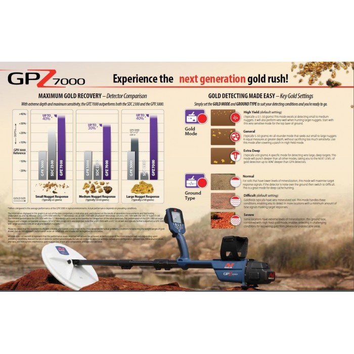 Altının çoğu, birçok dedektörün başa çıkamayacağı mineralize 'zor' zeminde gömülüdür. GPZ 7000, en zorlu zemin koşullarında bile kolaylıkla doğru bir şekilde 'dengelenir' ve otomatik olarak 'izler'.